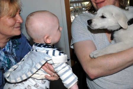 25.03.2018 Die Nachbars- Mädels eilen, wie immer, zu Hilfe und verwöhnen die Welpen!