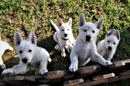 In Geburtsreihenfolge: Leon, Rüde, 526 g, grünes Halsband um 18:32 h Lobo, Rüde, 561 g, hellbraunes Halsband um 18:55 h Luigi, Rüde, 543 g, hellblaues Halsband um 19:04 h Laszlo, Rüde, 537 g, graues Halsband um 19:41 h Lara, Hündin, 481 g, rotes Halsband um 19:59 h Lino, Rüde, 546 g, oranges Halsband um 20:58 h Lux, Rüde, 426 g, dunkelfliederfarbenes Halsband um 21:28 h