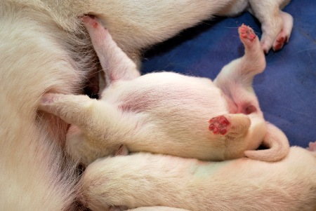 04.10.2010 Nachdem die Welpen heute abend 3 Wochen alt sind, gab es das erste Zufüttern!